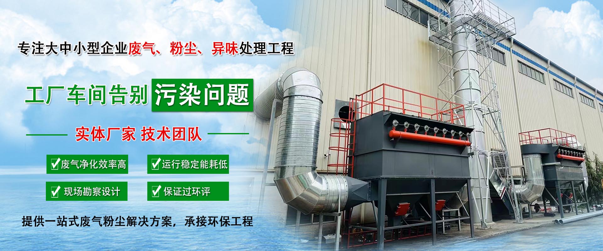 工廠廢氣治理涵蓋有機廢氣,噴涂廢氣,酸堿廢氣等各類工廠廢氣的治理。